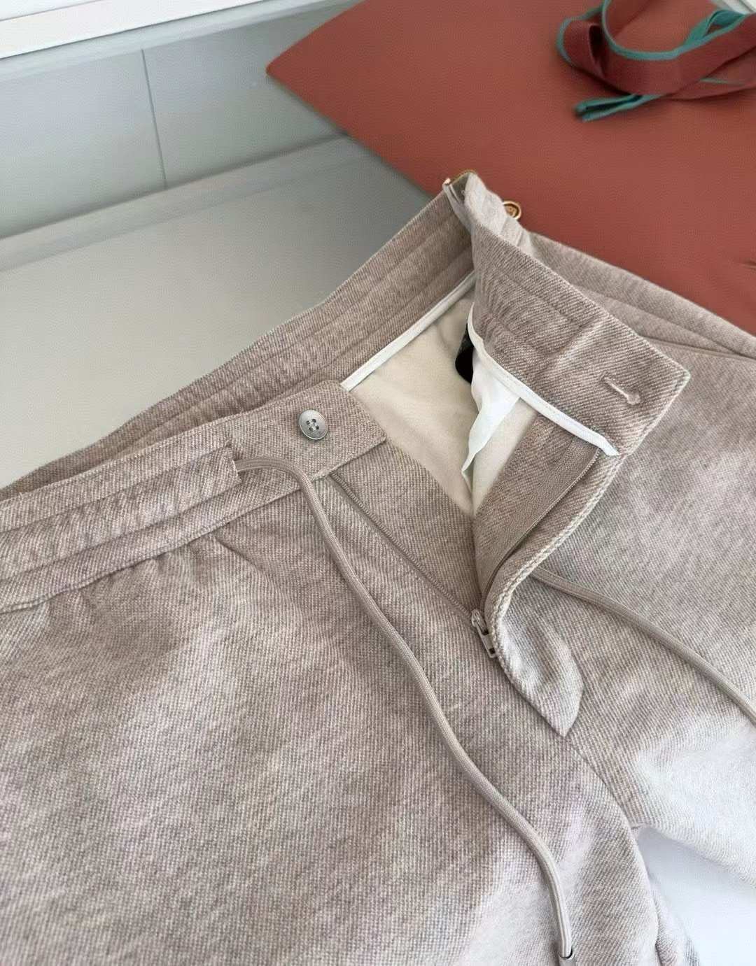 长裤 抽绳松紧腰直筒休闲裤 秋冬轻奢风高端羊毛混纺时尚 老钱风男装
