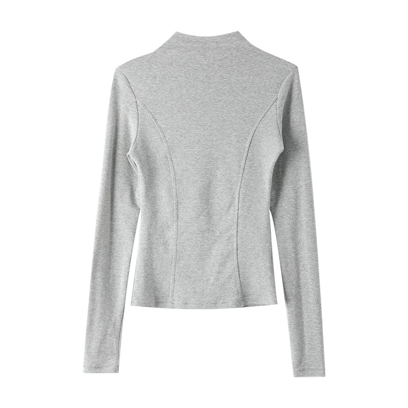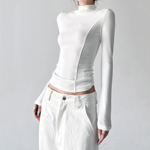 小立领基础款 T恤2025秋冬修身 上衣 女半高长袖 白色德绒内搭打底衫