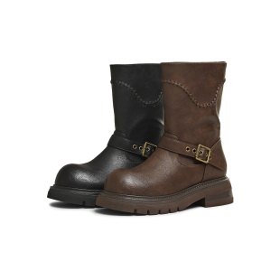 新款 靴冬季 子高筒时装 天美意复古厚底西部靴短靴骑士靴长靴女鞋