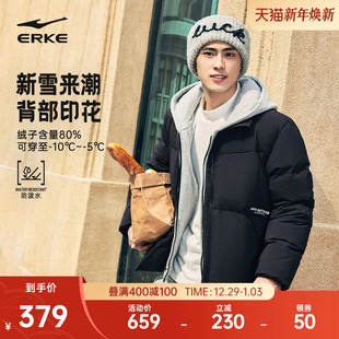 加绒男装 新款 加厚上衣保暖防风运动外套 秋冬季 特步连帽羽绒服男士