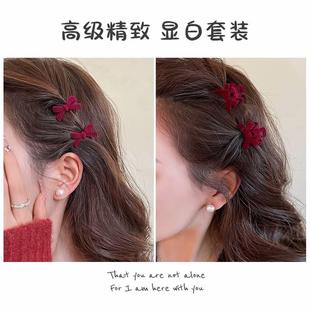 中国风可爱毛球发夹女儿童新年粉色蝴蝶结头饰对夹发卡小女孩发饰