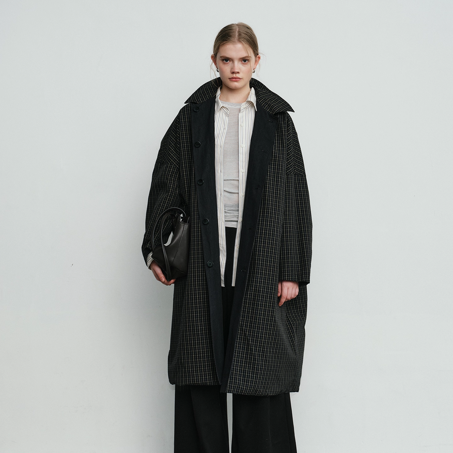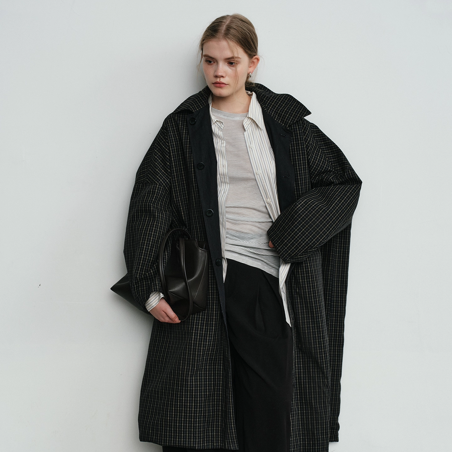情侣带垫肩加厚风衣外套老钱风 双面羊毛呢子大衣男中长款 储格