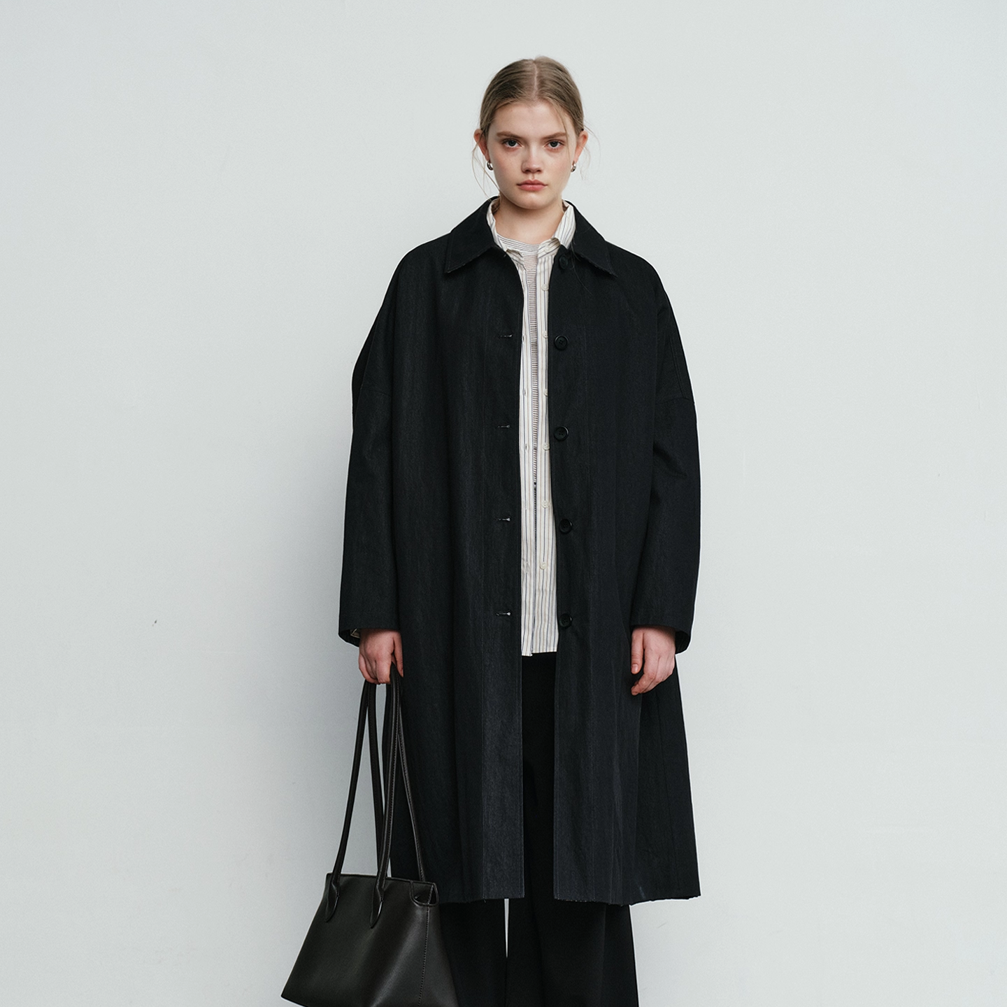 立领风衣外套 配腰带夹棉秋冬毛呢长款 PMET 多形态翻领毛呢大衣