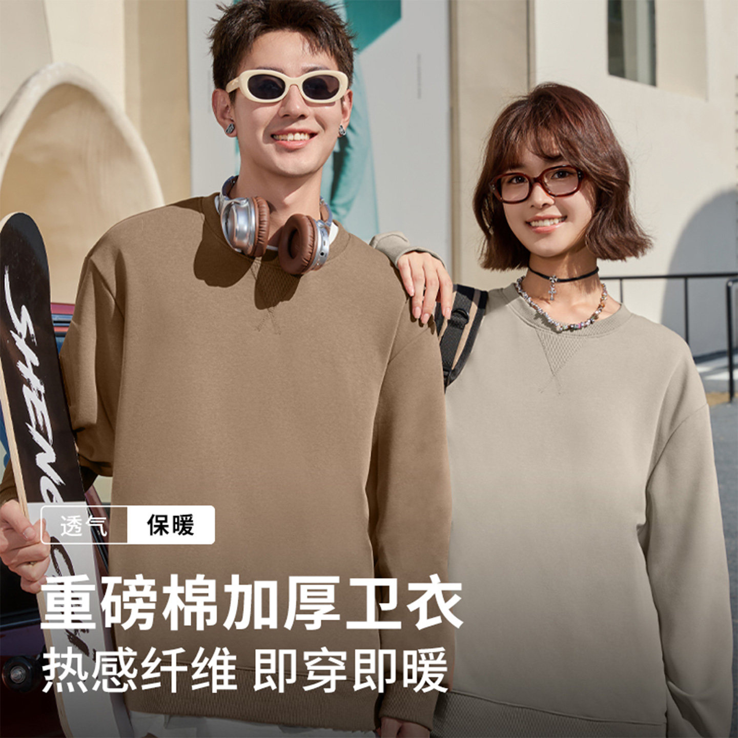 班尼路S&K系列奥粒绒三角卫衣男冬季 圆领内搭加绒保暖外套LF 男款