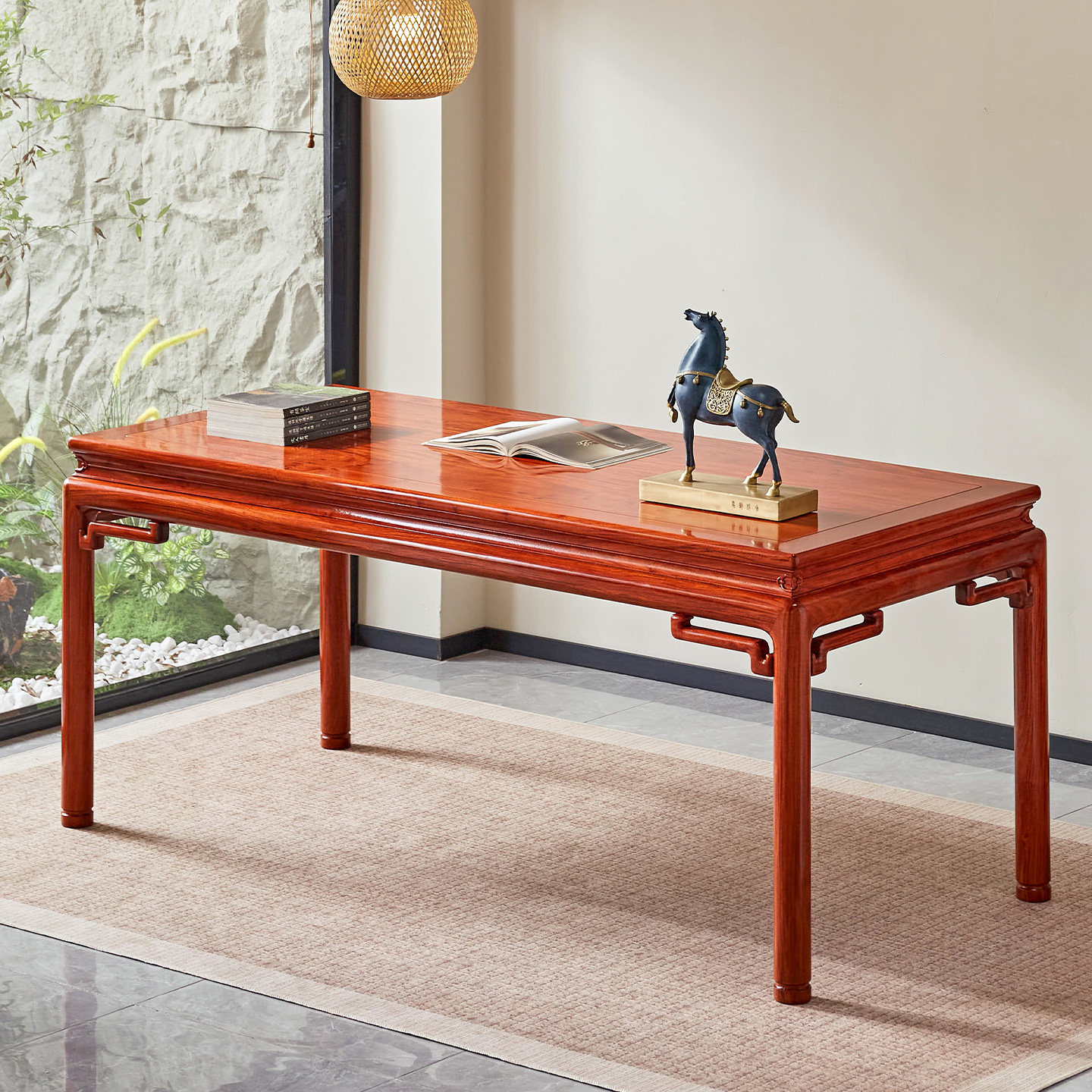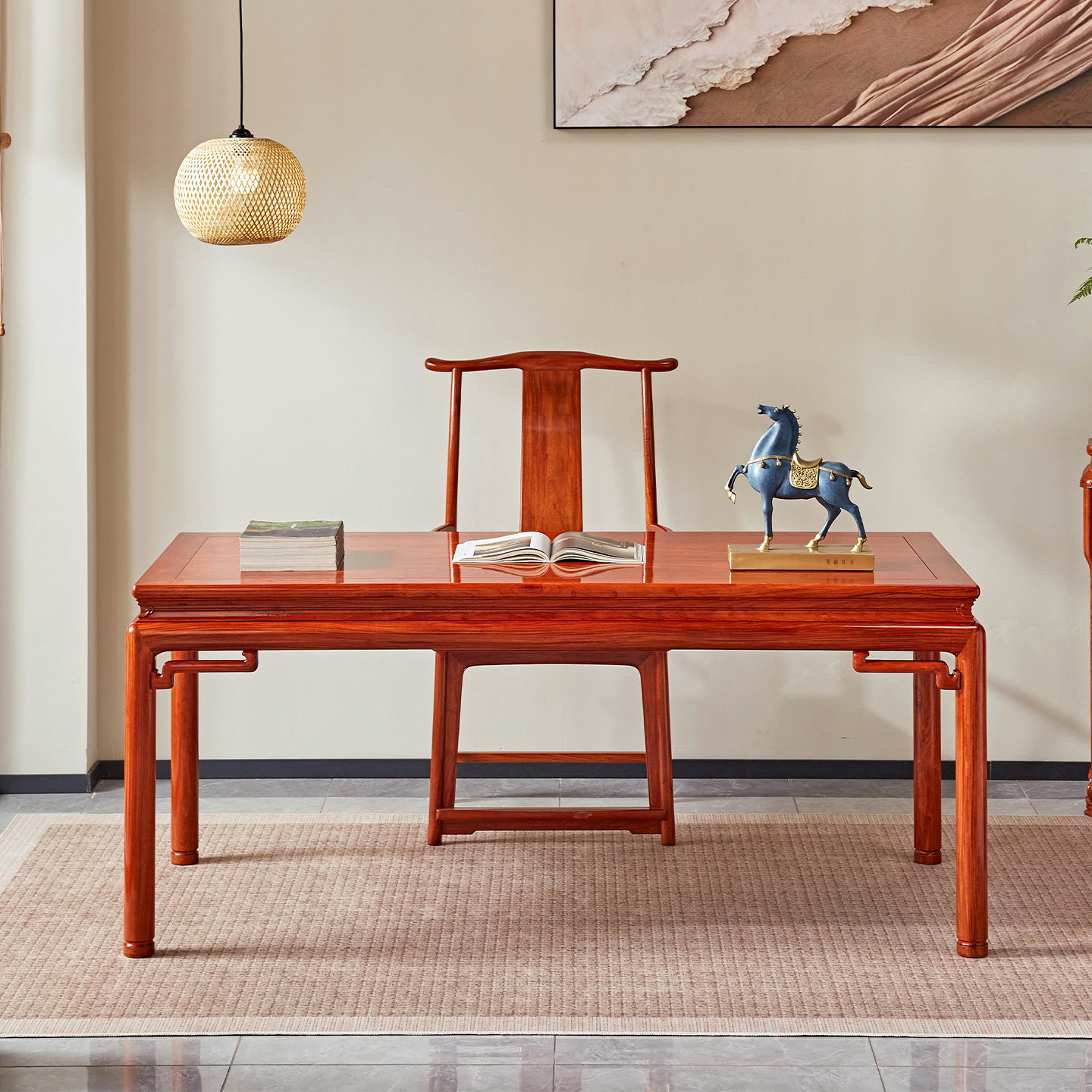 缅甸花梨木书桌中式 实木大果紫檀办公桌红木写字台家用书法画案桌