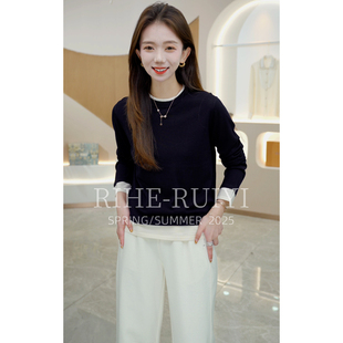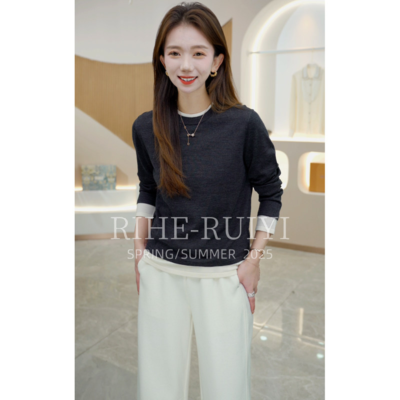 258960款 假两件 140s扬子纱精纺羊毛拼色假两件套头毛衣