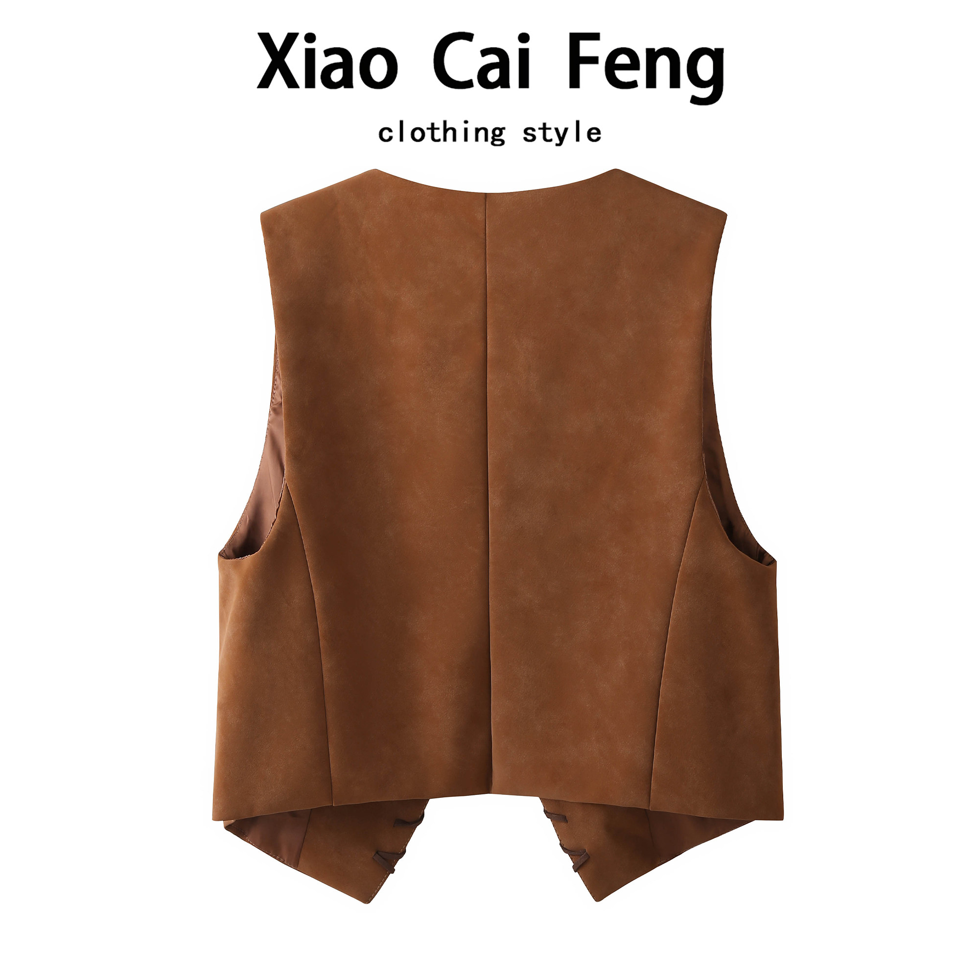 复古鹿皮绒棕色马甲女春秋时髦洋气V领叠穿不规则坎肩美拉德上衣