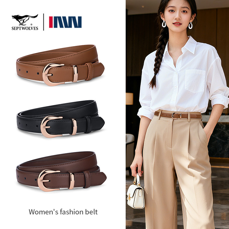 七匹狼女士针扣皮带2025新款 腰带送女友老婆礼物 纯牛皮百搭牛仔裤