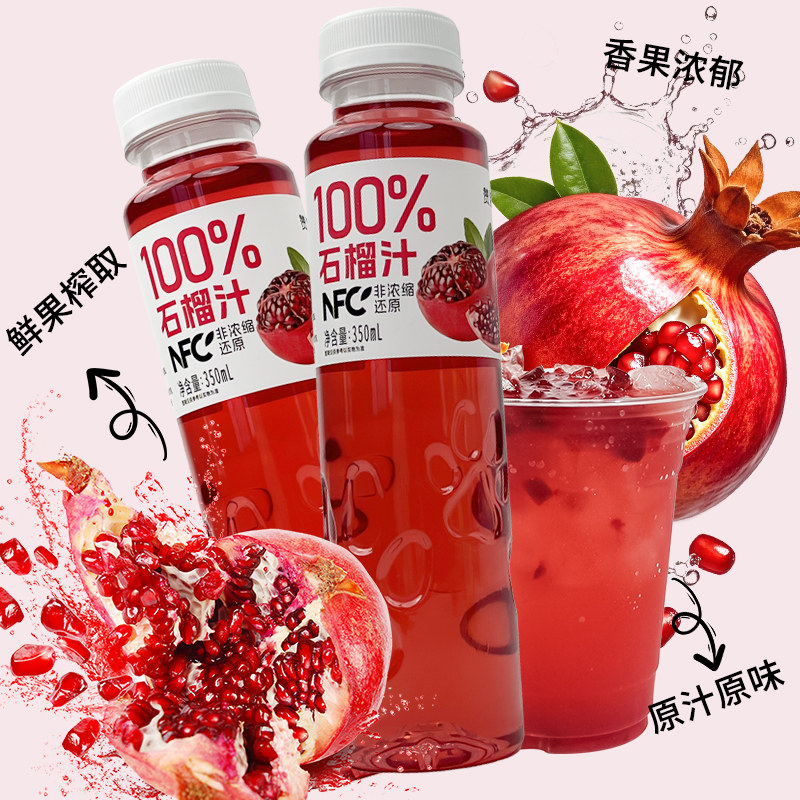 NFC100%石榴汁营养红石榴富含维C果蔬汁饮品纯果汁 16瓶 350ml