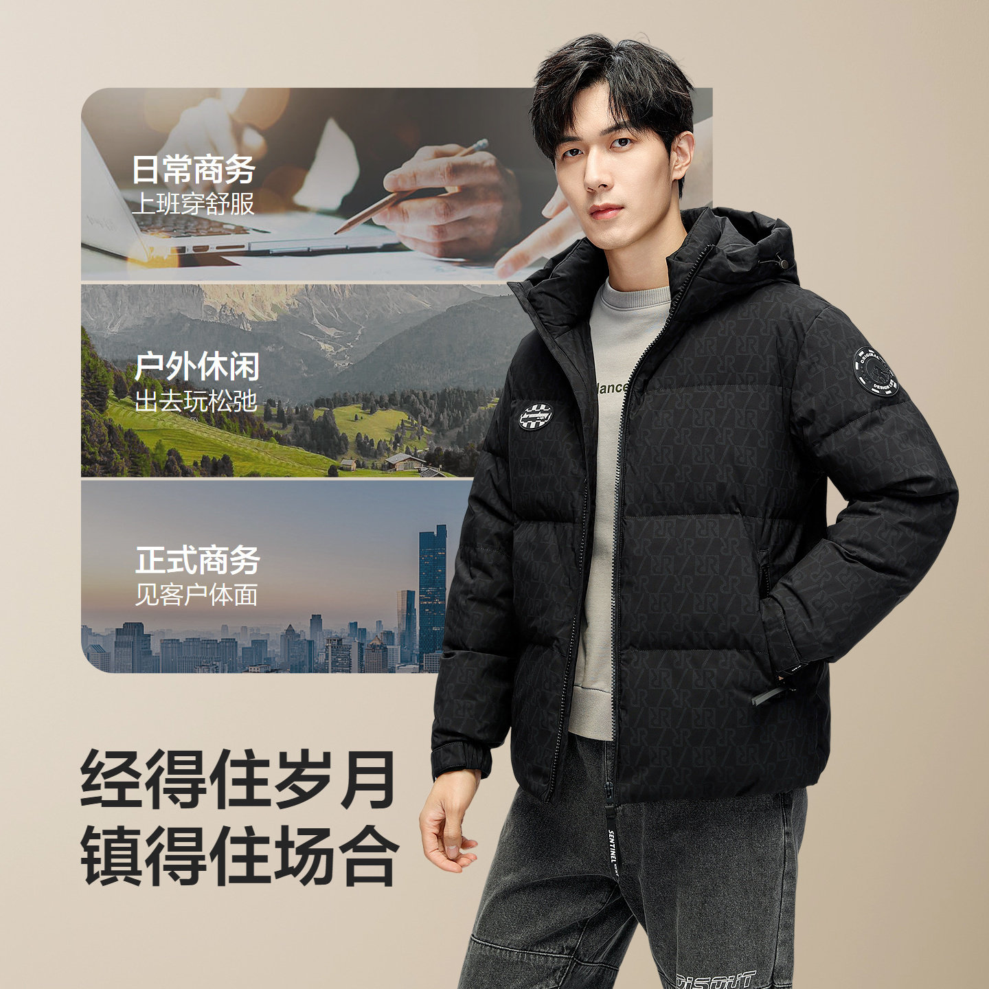 撞色迷彩时尚 短款 户外连帽运动F 羽绒服男士 雪中飞2025冬新款