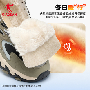 青少年加厚保暖防滑高帮跑步鞋 乔丹棉鞋 新款 男2025冬季 加绒运动鞋