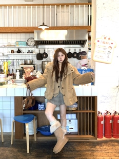 宅宅athome 双面穿皮毛一体外套立领羊羔毛保暖上衣 伯爵奶茶
