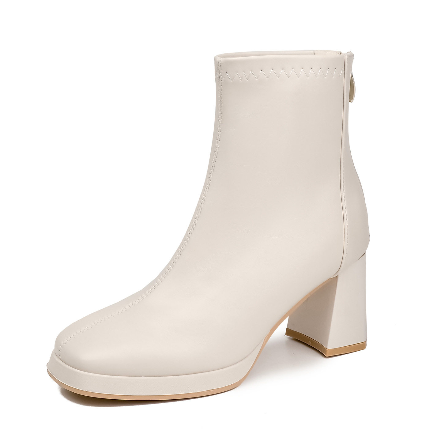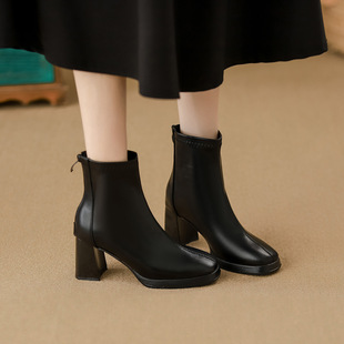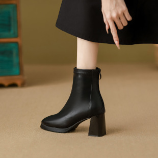 高跟7CM短靴女2026年新款 粗跟防水台马丁靴百搭加绒瘦瘦靴 春季