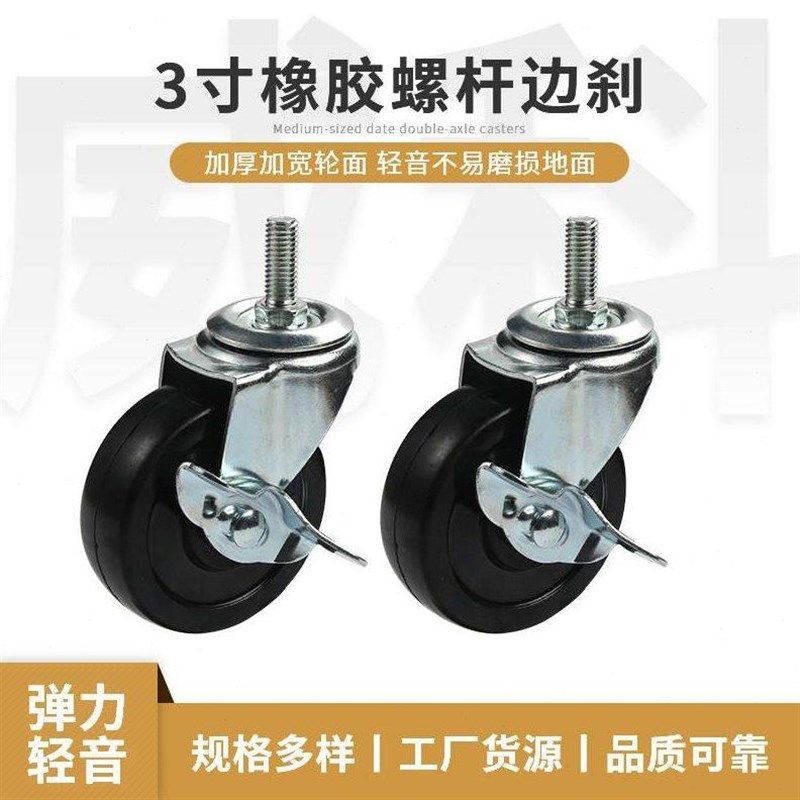 螺杆式 M1025橡胶脚轮展示架万向脚轮带刹车轻型实心小轮子万向轮