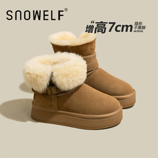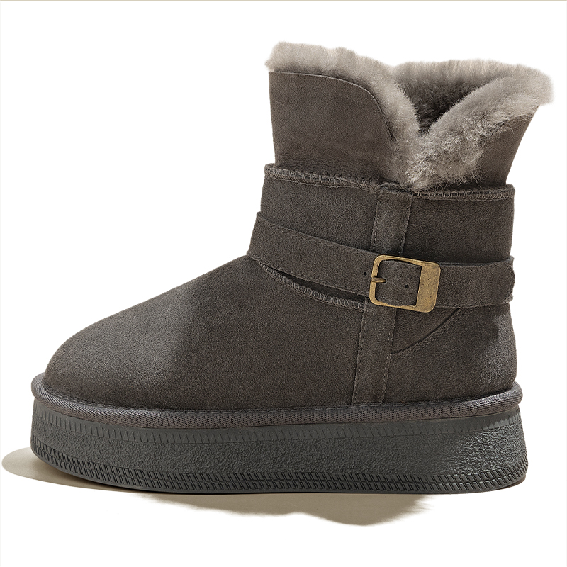 灰色厚底中筒雪地靴女2025冬季 东北两穿加绒加厚保暖皮毛一体棉靴