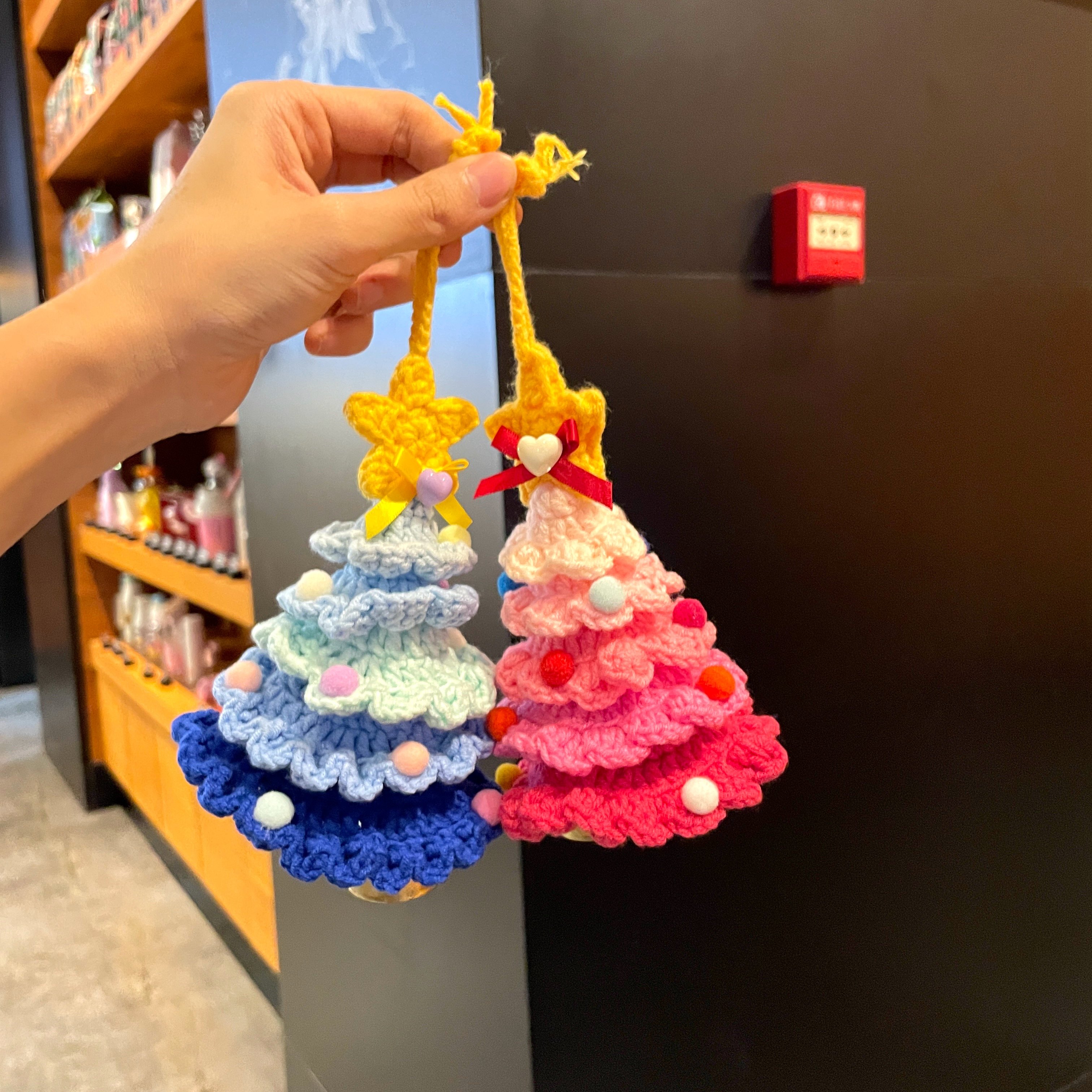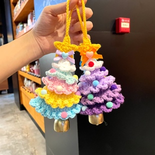 圣诞节圣诞树毛线钩织铃铛成品桌面装 饰创意圣诞礼物包包挂件礼品