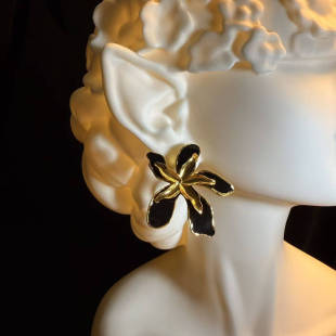 橄榄 耳环 Vintage古着 Petals黑色花朵耳钉 耳饰 Gilded 开花