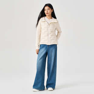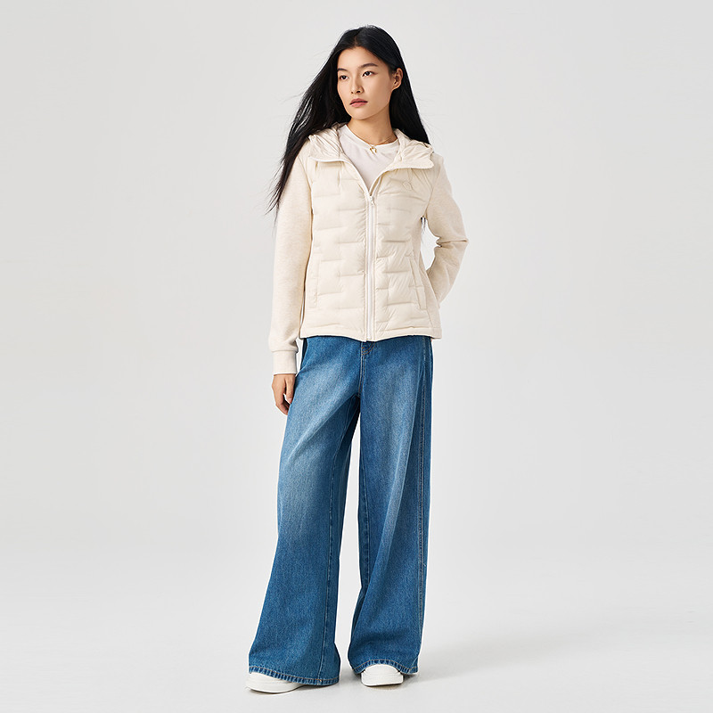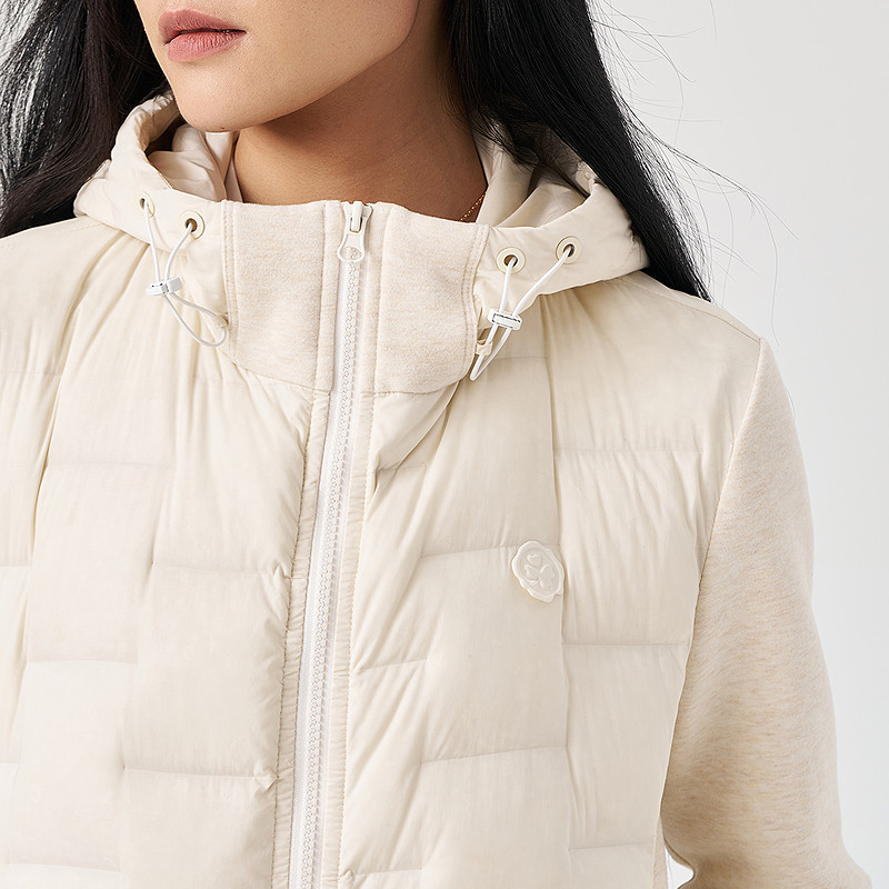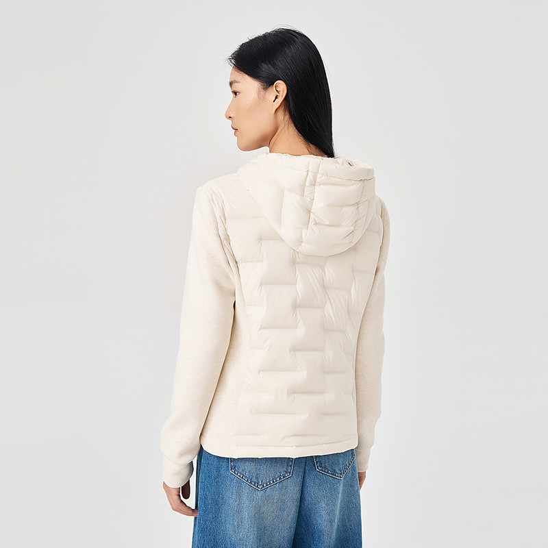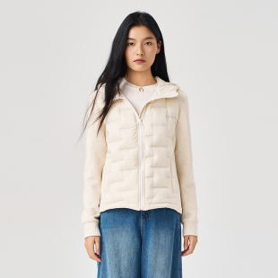 白色连帽羽绒服女拼接袖 OTT 新品 2025冬季 鹅绒外套 商场同款
