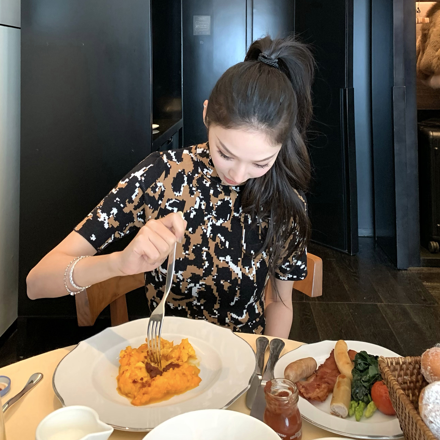 拼色吊带连衣裙胖妹妹通勤风显瘦裙子 翻领荷叶边长袖 加肥大码 女装