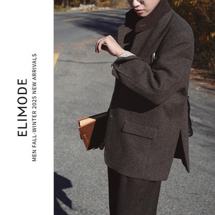 ELI 老钱风羊毛混纺平驳领牛角扣复古休闲西服外套男秋 盖茨比