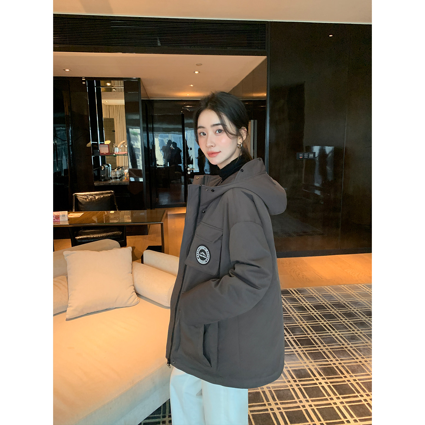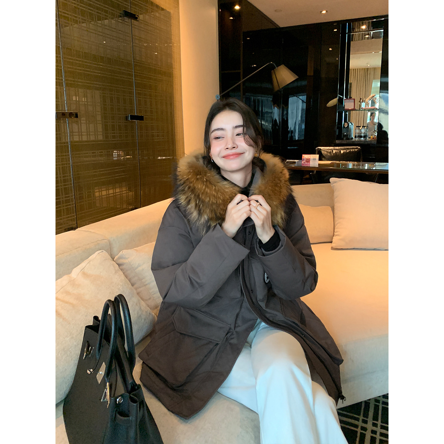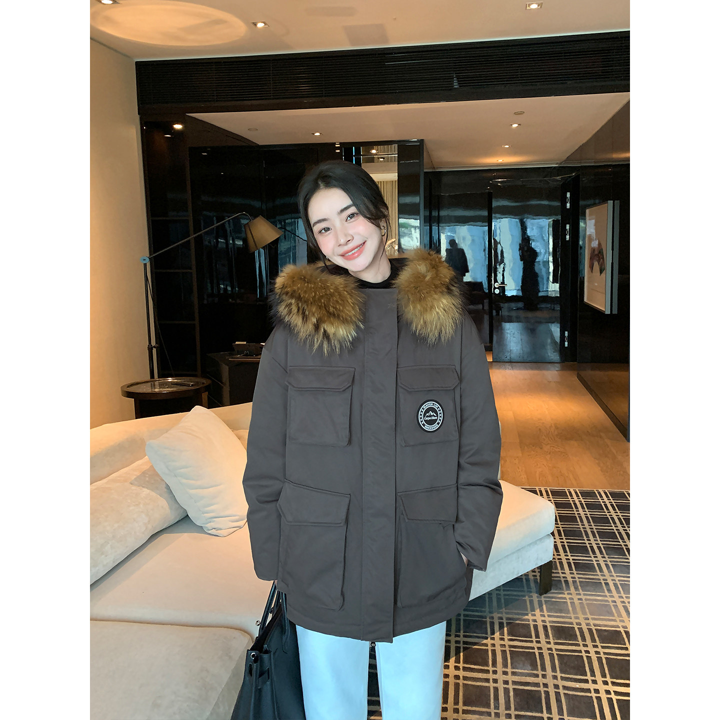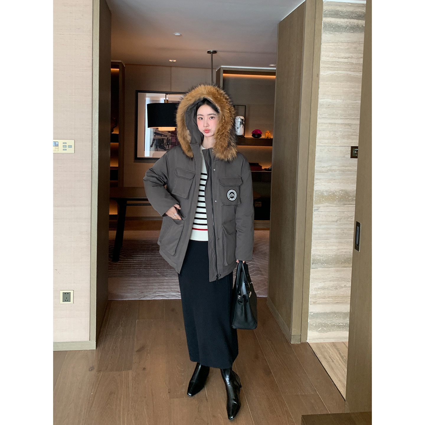 宽松百搭外套潮 韩版 90白鸭绒大口袋连帽长款 羽绒服女冬2025年新款