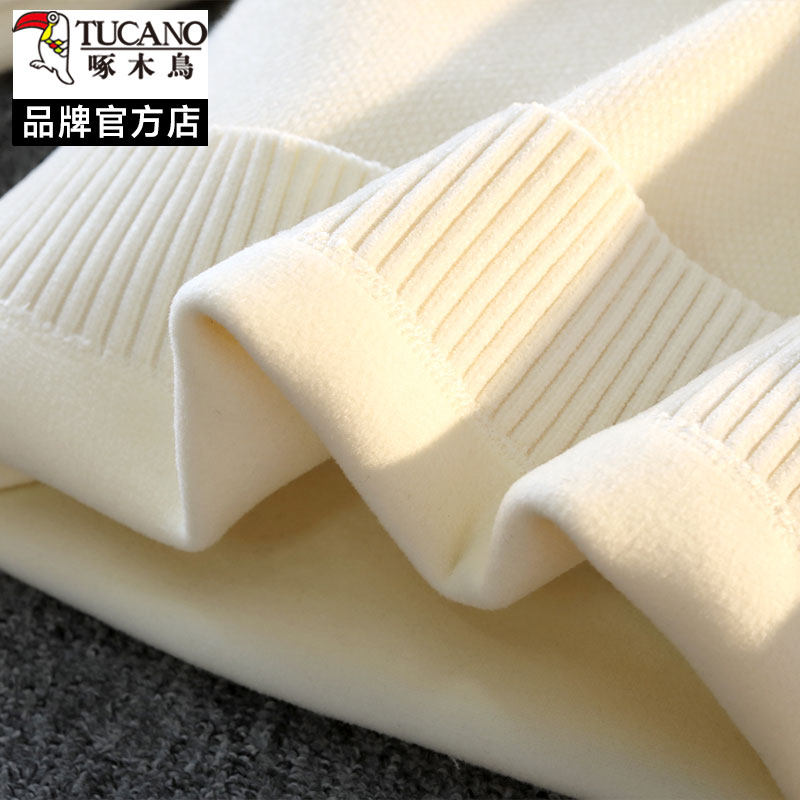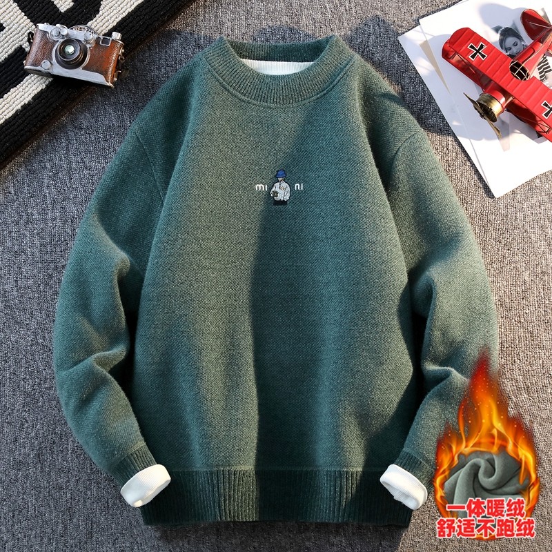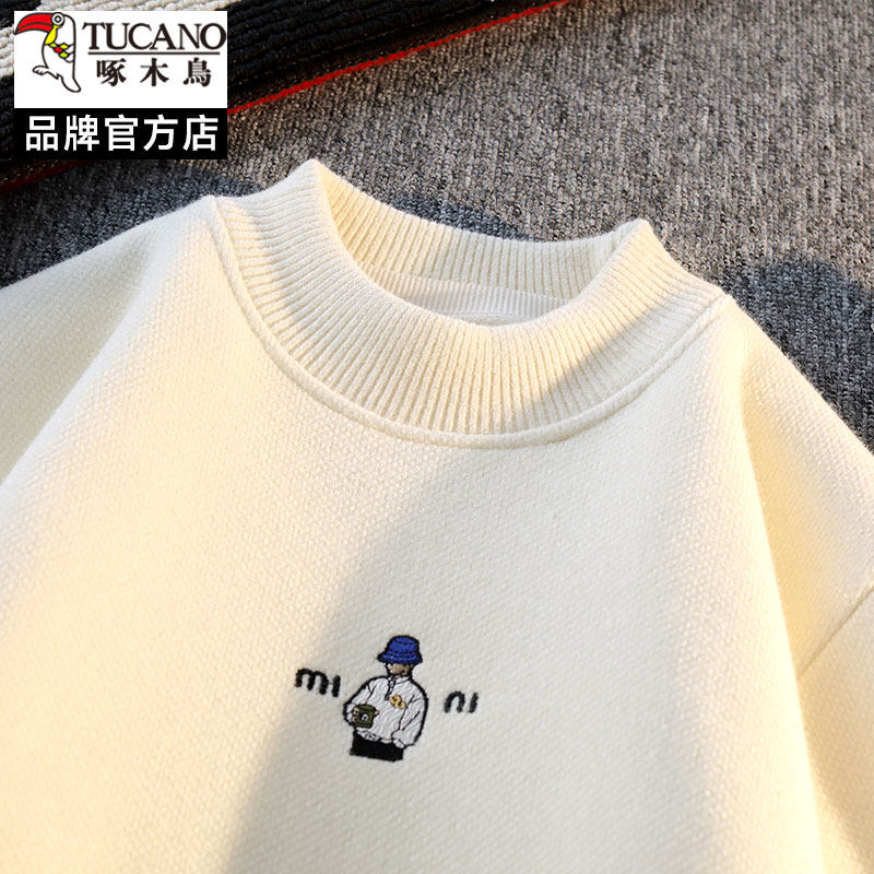 毛衣上衣 刺绣潮流百搭男士 啄木鸟圆领毛衣男加绒保暖针织衫 秋冬季