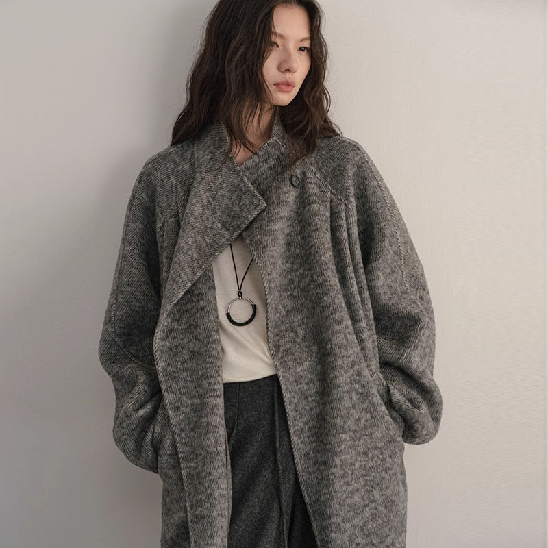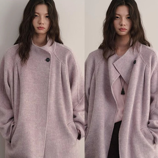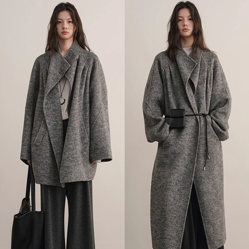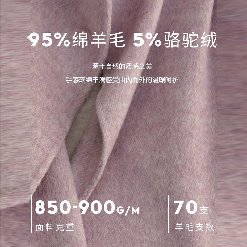 冬季 重磅驼绒轻盈保暖简约系带大翻领羊毛双面毛呢大衣外套女 新款