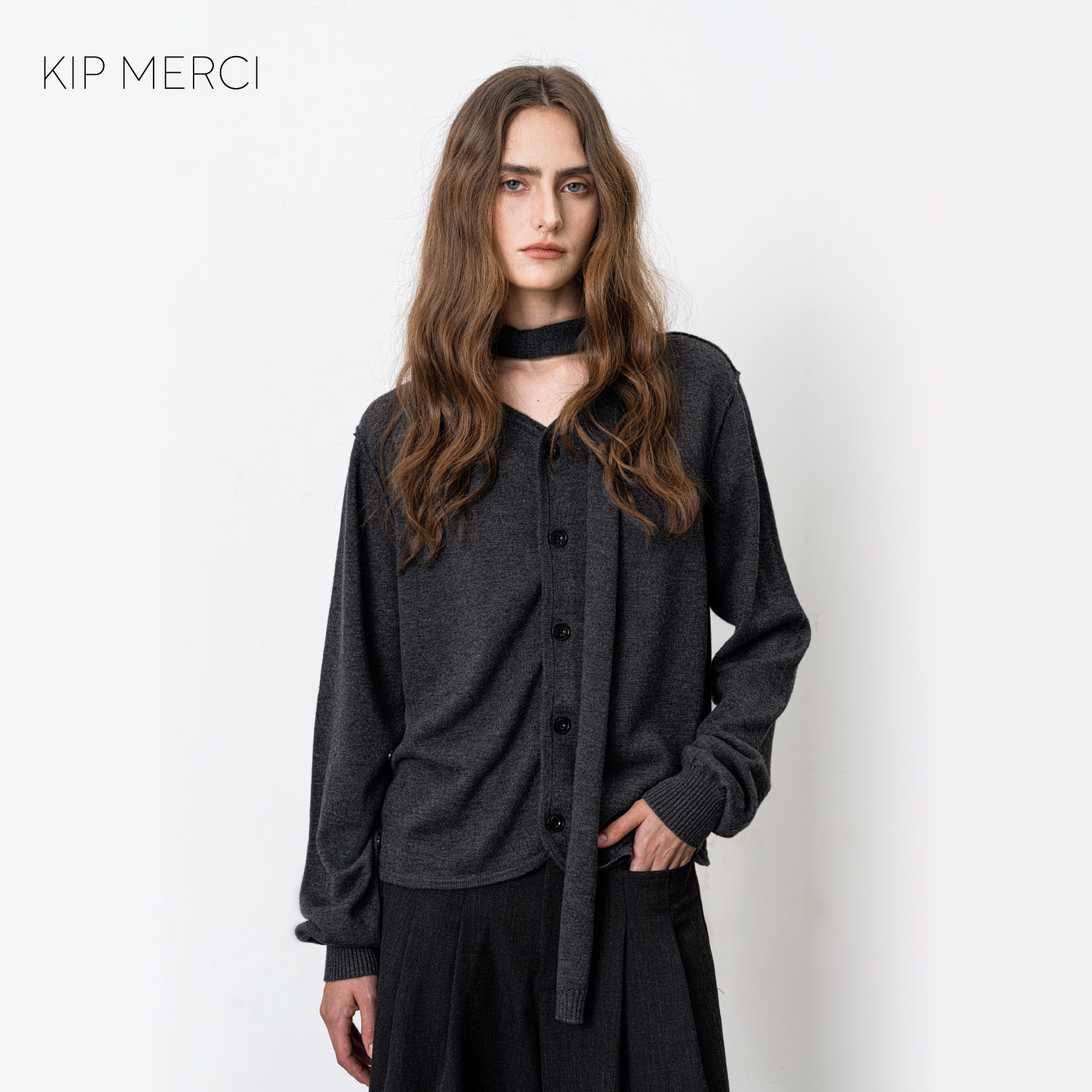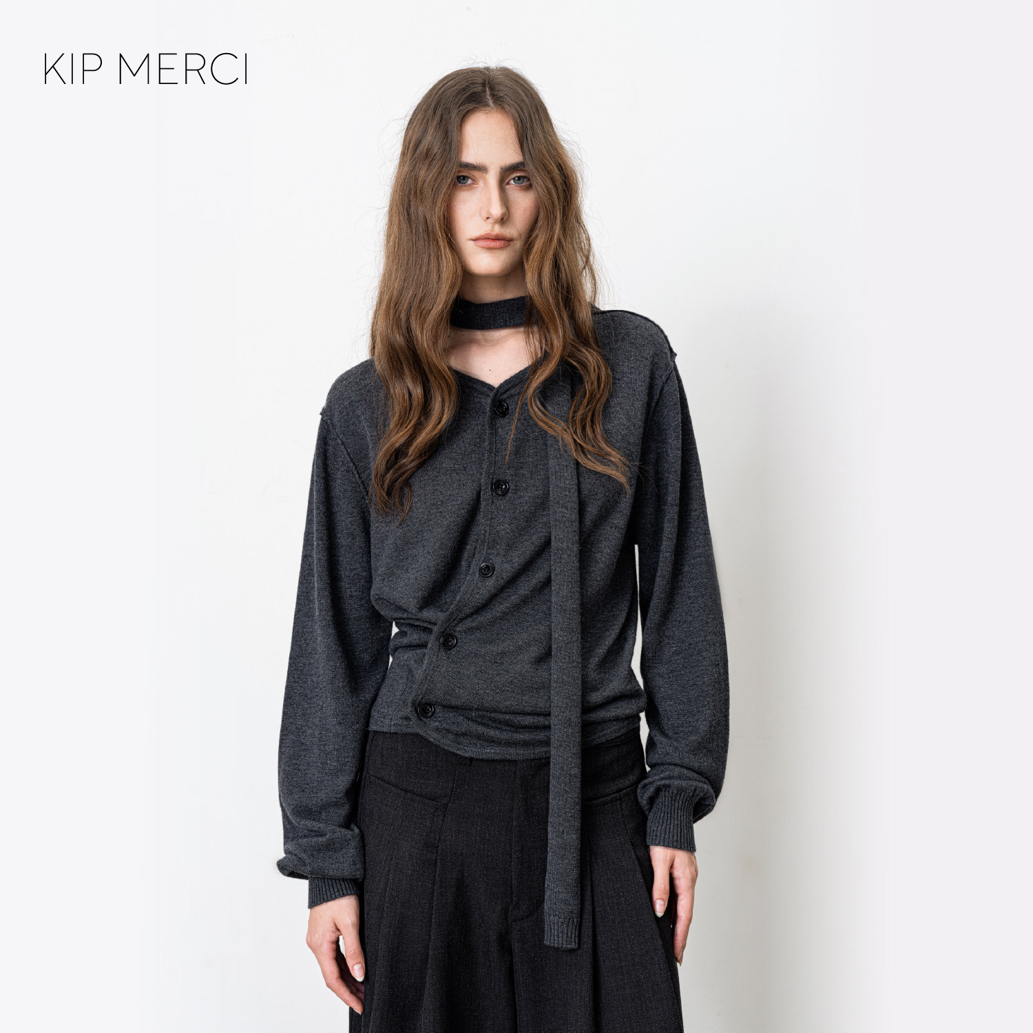 半高领设计感针织开衫 新款 洋气紫色立领方扣毛衣女2025年春季 韩版