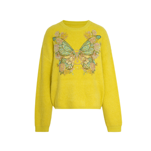 LILY2026春新款 上衣女 含羊毛提花撞色毛衣休闲宽松圆领套头针织衫