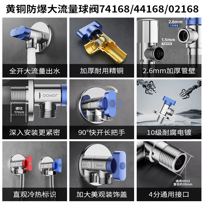 九牧卫浴黄铜防爆大流量球阀小巧精致省空间洗衣机多功能角阀系列