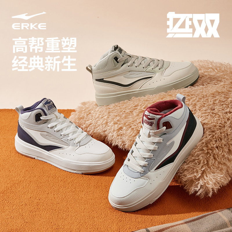 板鞋 男鞋 革面休闲鞋 多巴胺色系保暖男士 特步海浪鞋 运动鞋 秋冬新款