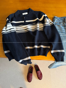宽松毛衣外套翻领针织羊绒衫 品牌高级感羊毛开衫 女POLO领秋冬新款