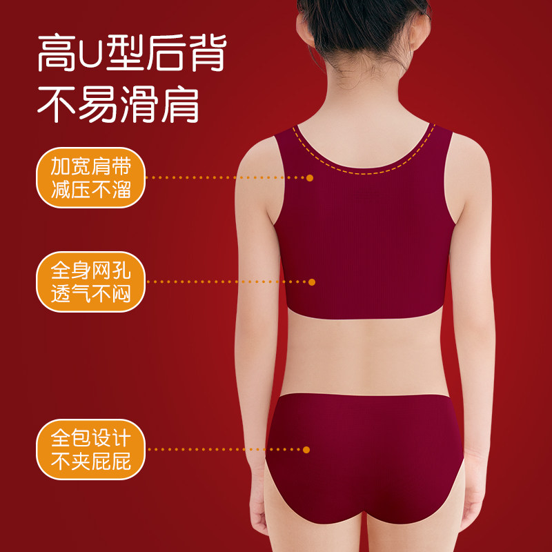 likeuu女童本命年内衣套装 红色新年礼物少女文胸青少年儿童内裤