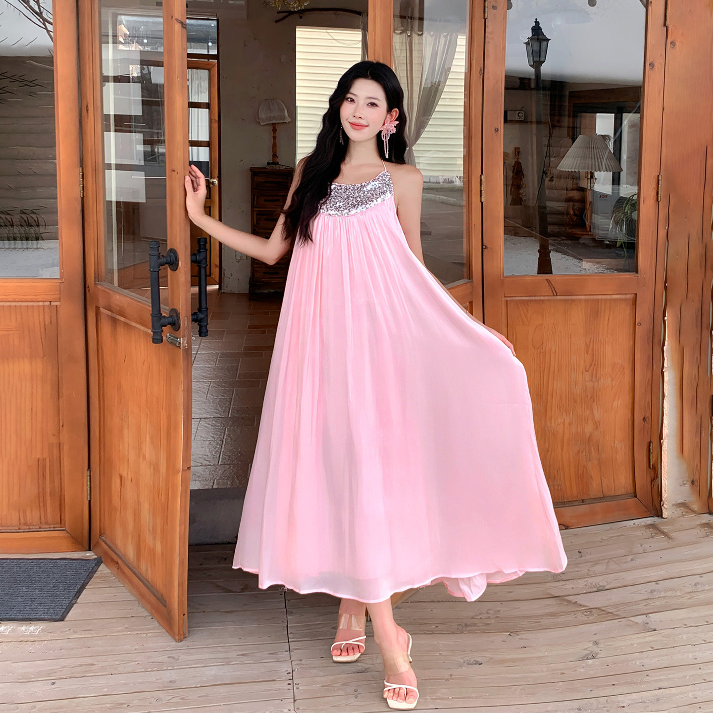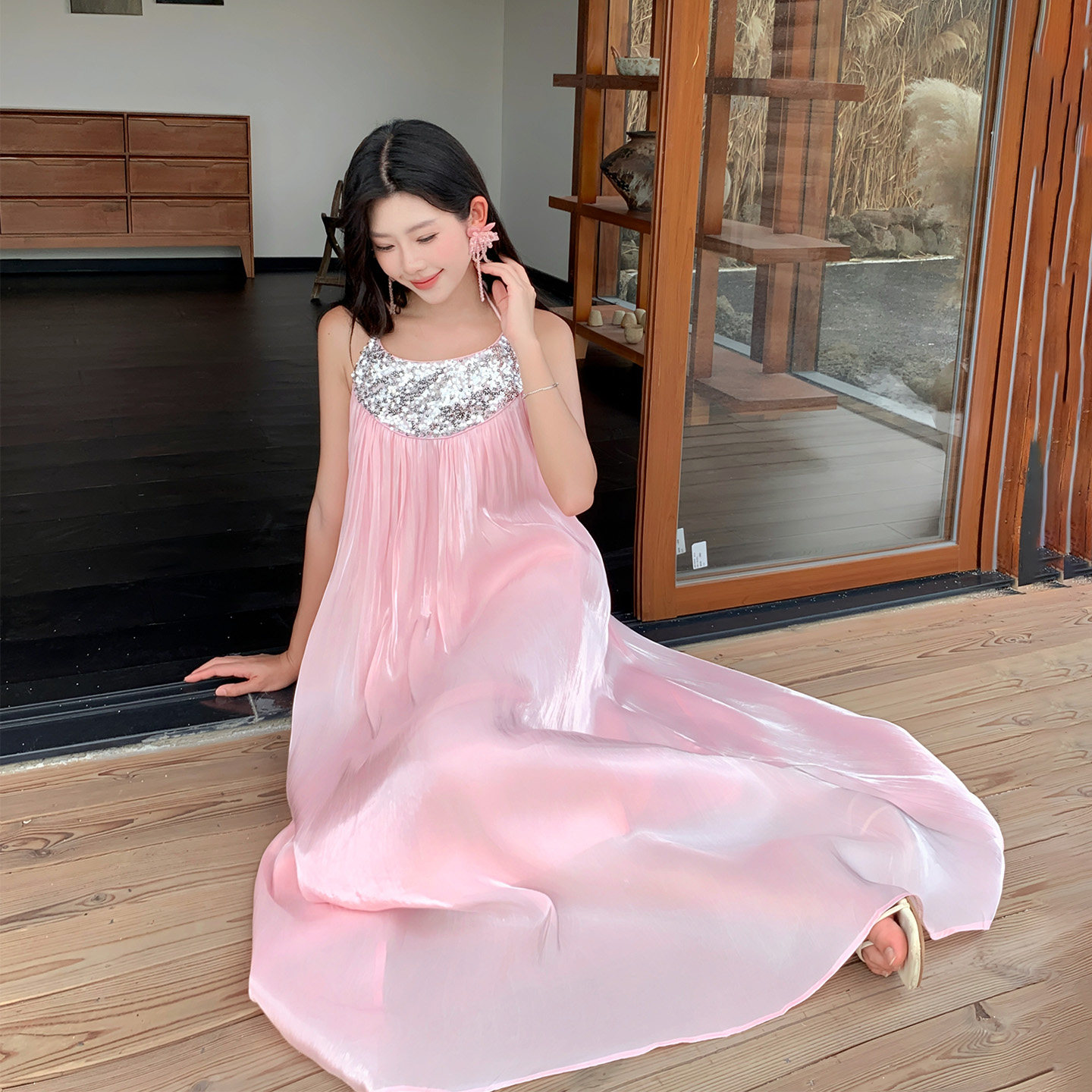 三亚海边度假沙滩吊带绝美超仙法式 连衣裙海岛穿搭ootd长裙女