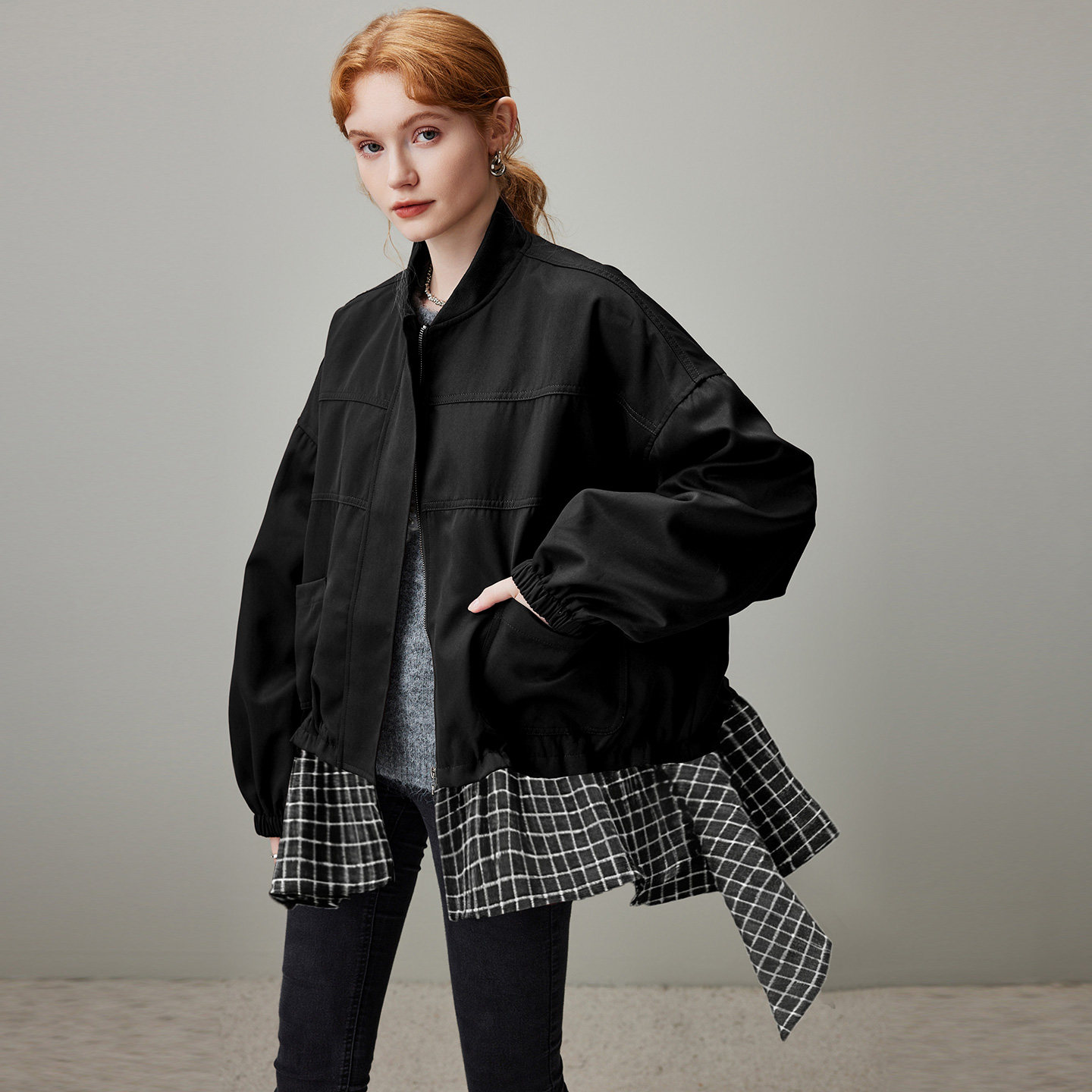 拼接休闲百搭宽松夹克 新款 dfvc设计感中长款 风衣外套女2026年春季