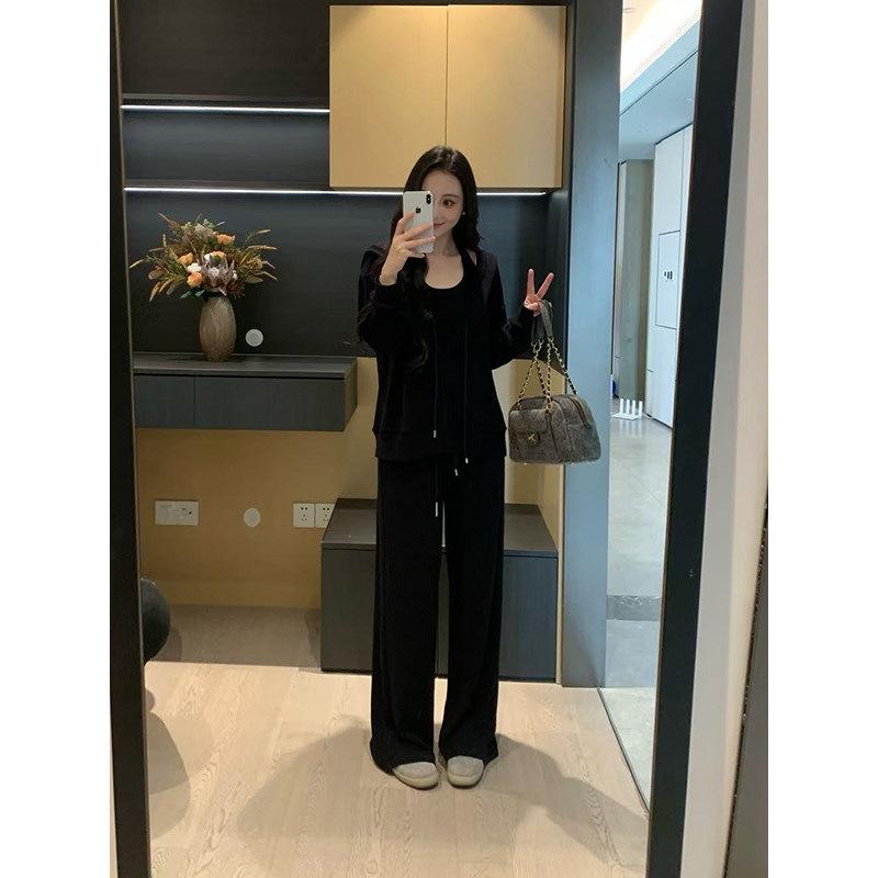 休闲周刊 显瘦休闲套装 秋冬空气层连帽卫衣 长裤 女 背心 XINYI