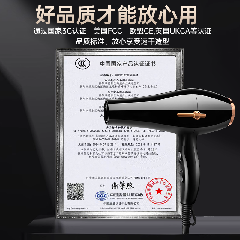 康夫电吹风机家用速干负离子护发大功率风力发廊理发店专用黑风筒