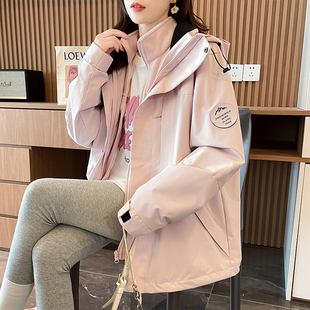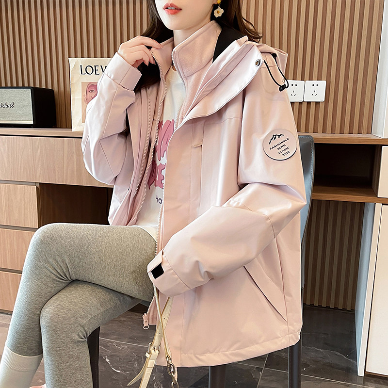 粉色加绒加厚冲锋衣外套女三合一可拆卸秋冬装 情侣户外登山服 新款