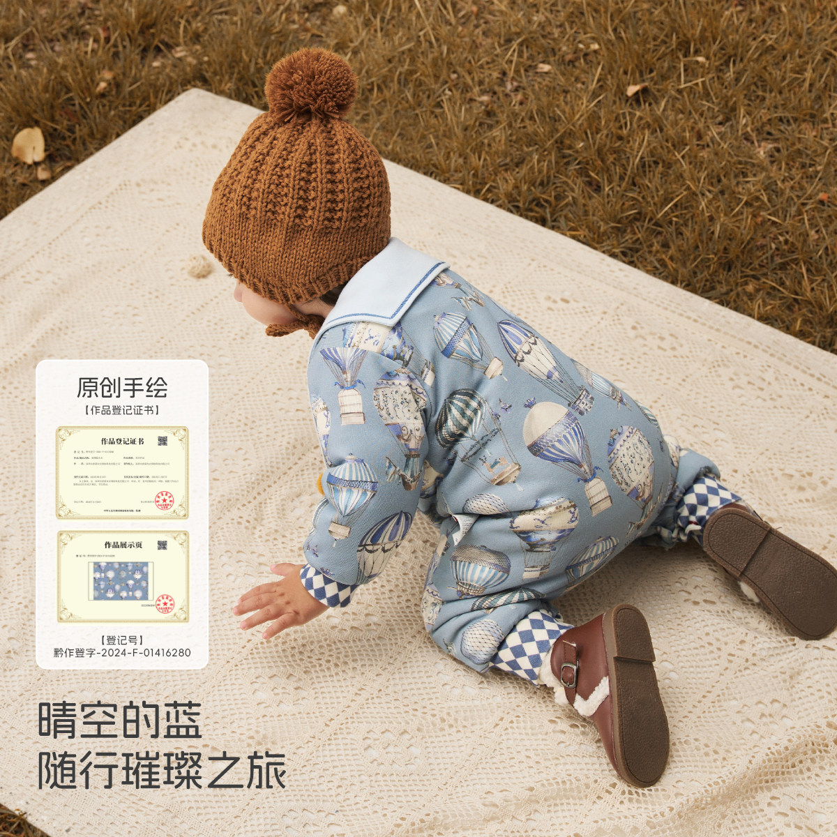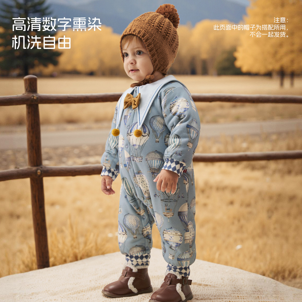 aqpa爱帕夹棉婴儿连体衣保暖棉服秋冬宝宝哈衣外出服 璀璨蓝宝石