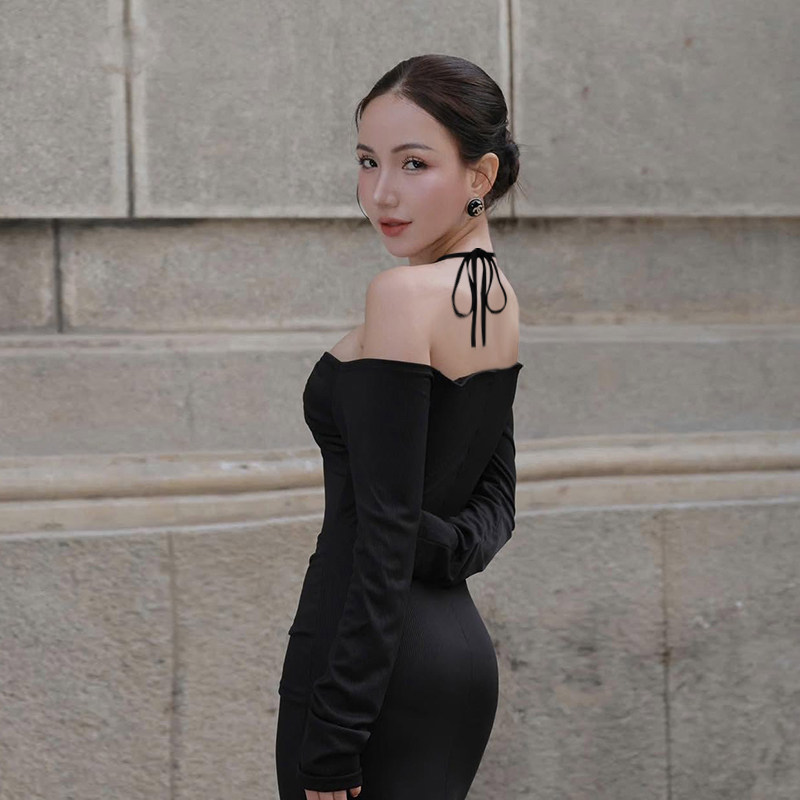 设计感解构收腰一字肩长袖 氛围感战神裙 包臀连衣裙 爱神 HiimDai