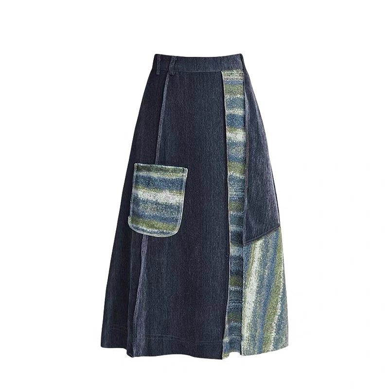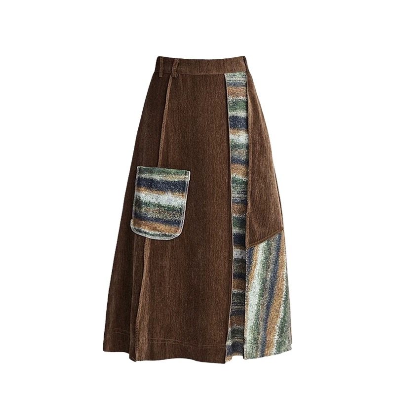 A字长裙 复古不规则彩砂拼接半身裙女秋冬高腰中长款 LIULIUGE 美式