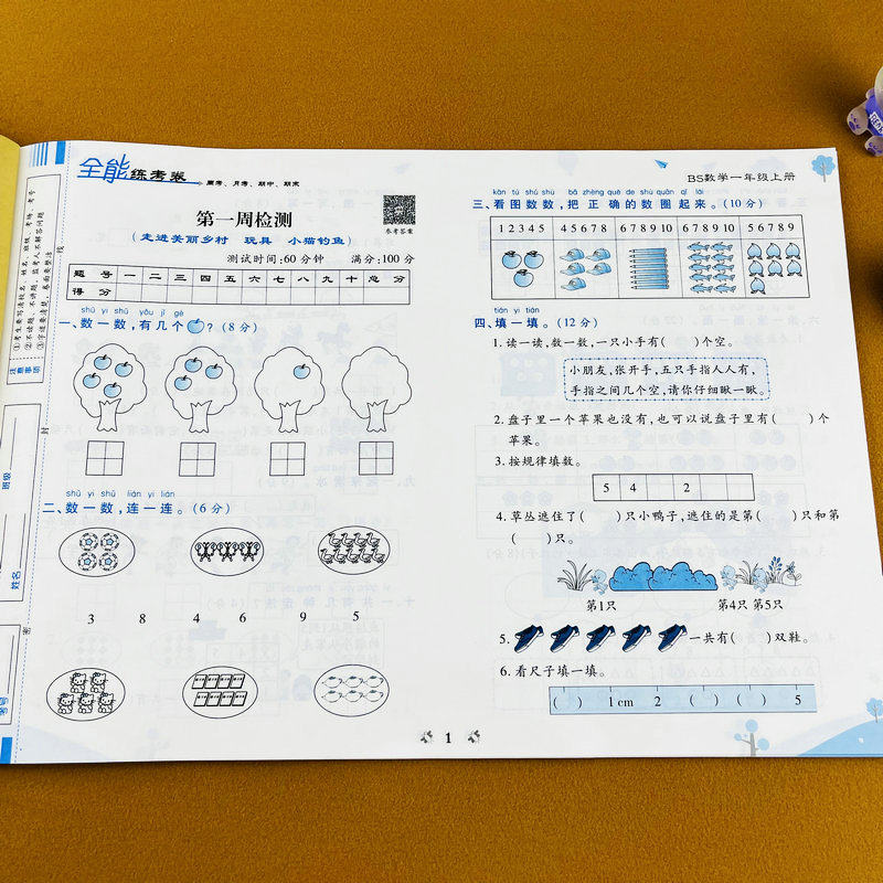 测试卷月考测试卷期中期末真题卷同步练习册荣恒全能练考卷陪视频讲解 一年级上册数学语文同步测试卷周考单元 2025新版 北师大版