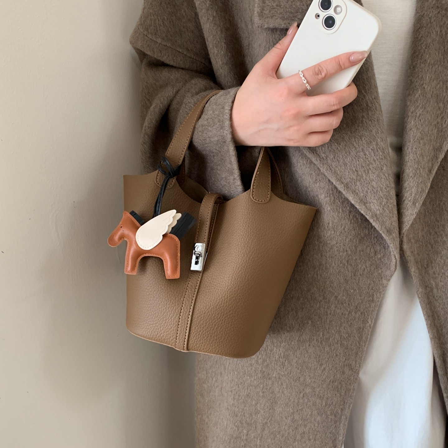 高级感小众设计包包女2025秋新款 通勤百搭斜挎包手提菜篮子水桶包