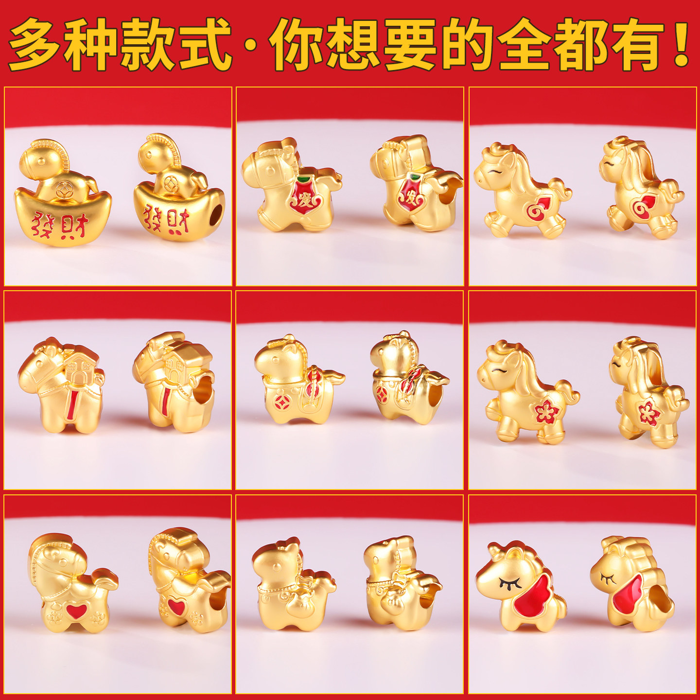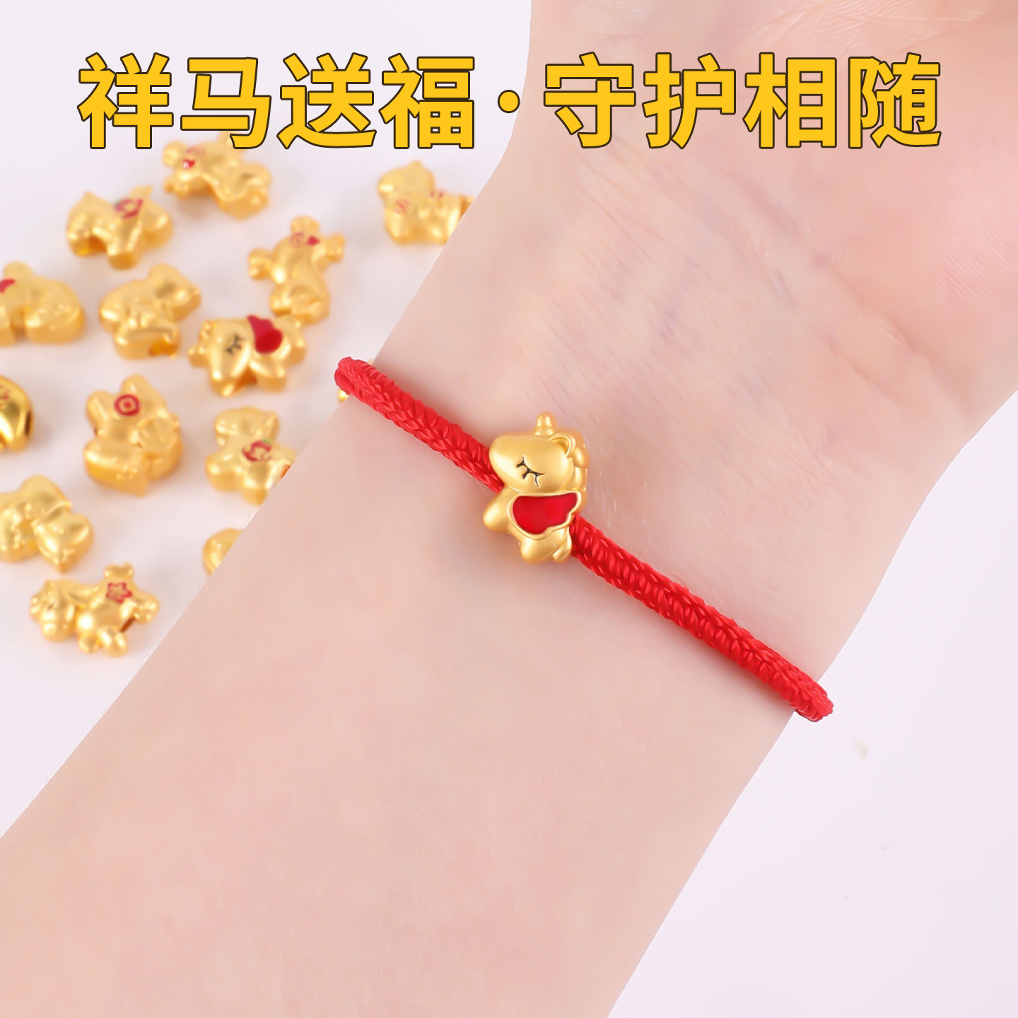 古法金隔珠2026马年挂件奔腾小马手链手串diy手工串珠沙金小配件