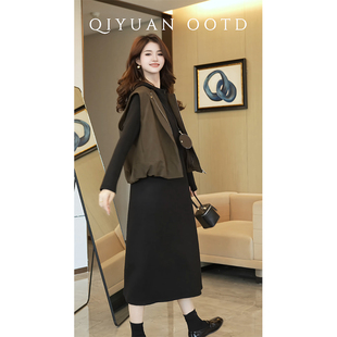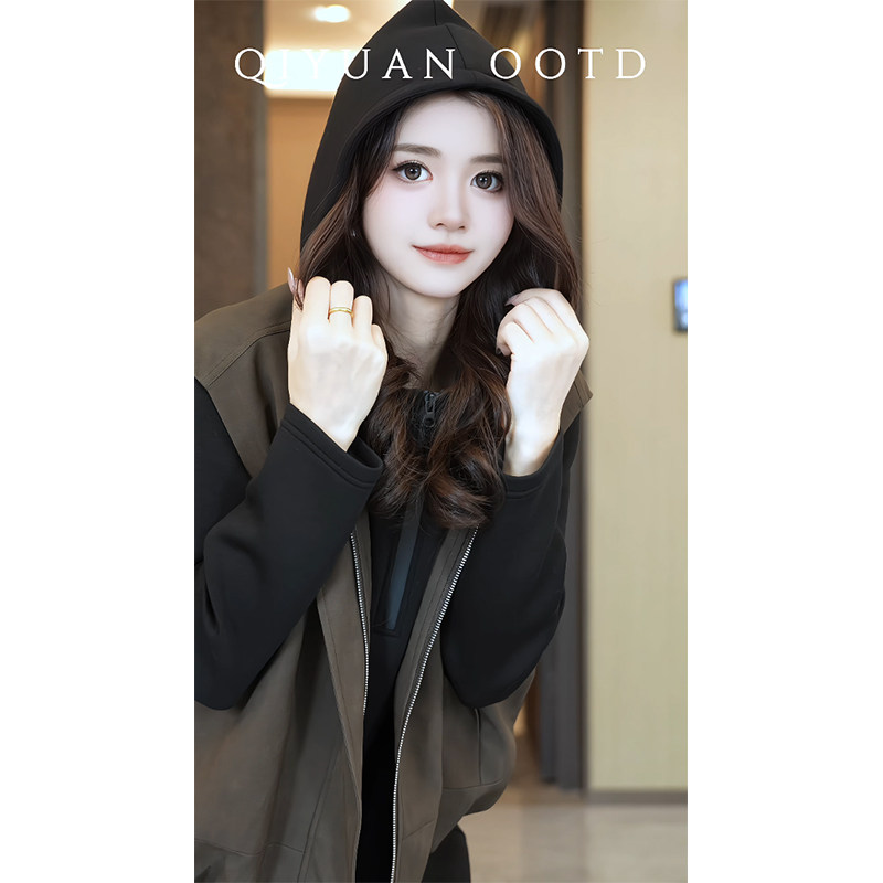 宽松遮肉显瘦长裙 通勤半拉链连帽连衣裙2025秋冬款 柒院家大码 女装