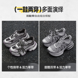 2026春加绒新款 骆驼银星厚底老爹鞋 增高银色男女 迪丽热巴同款