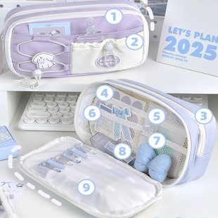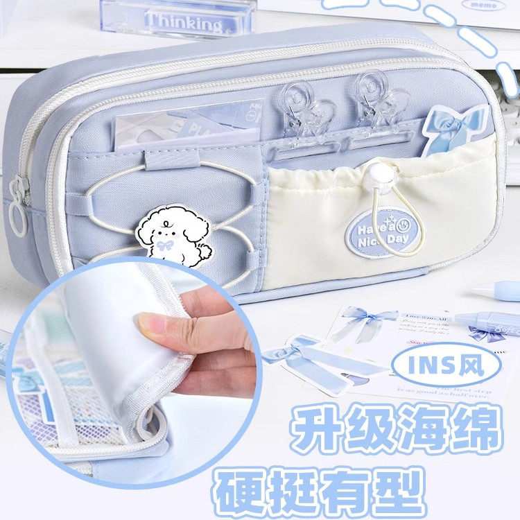 高颜值ins风儿童铅笔盒超火初中生简约高中生小学生文具袋 女孩小众不撞款 海盐奶蓝 笔袋大容量女生2025新款