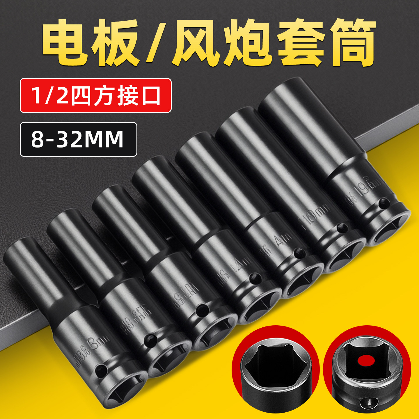 32mm17 2大飞6角加长套筒12.5m电动棘轮扳手六角套头8
