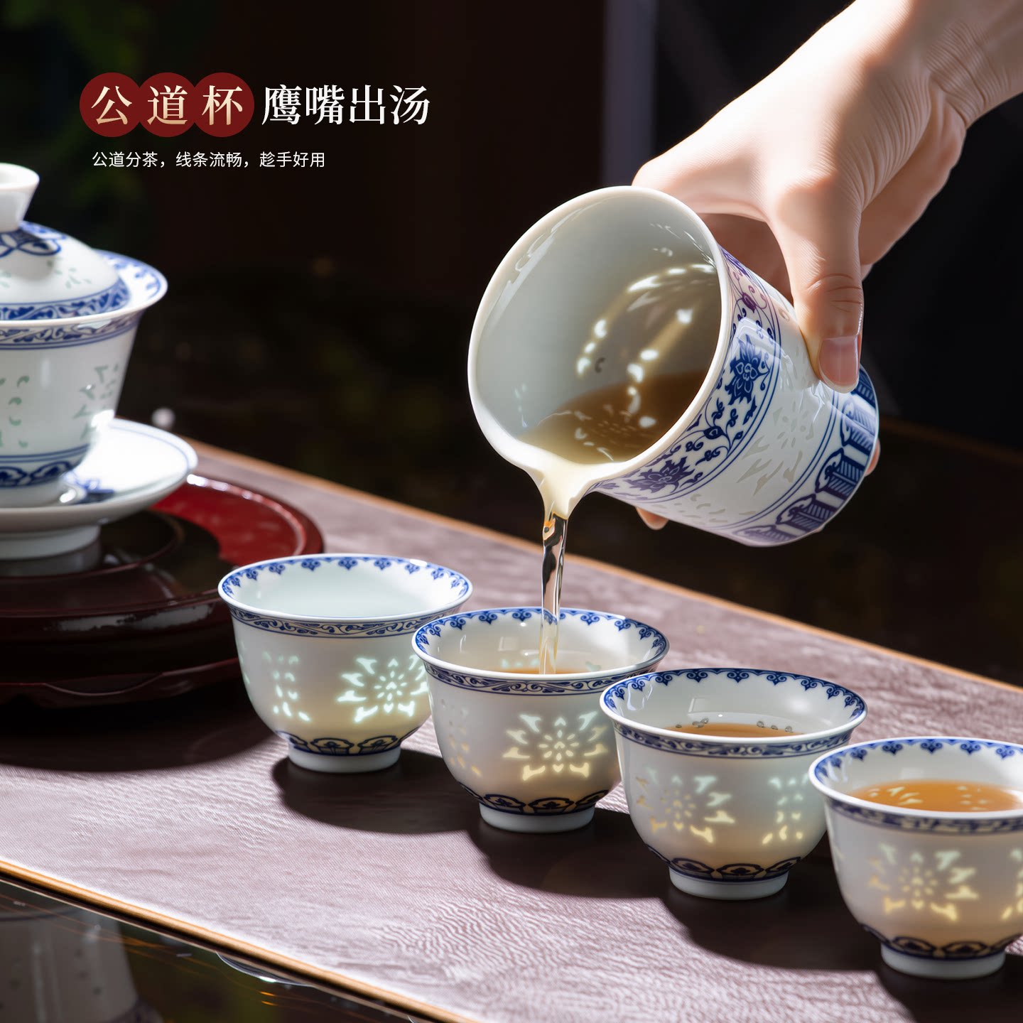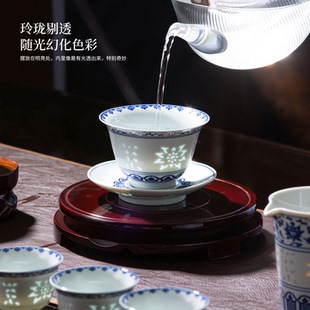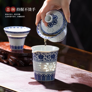 景德镇青花玲珑瓷盖碗茶杯不烫手功夫茶具套装 公道杯礼盒礼物 中式