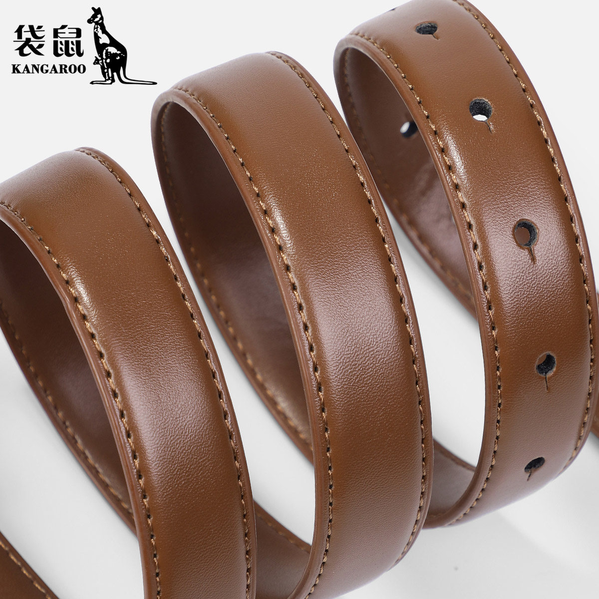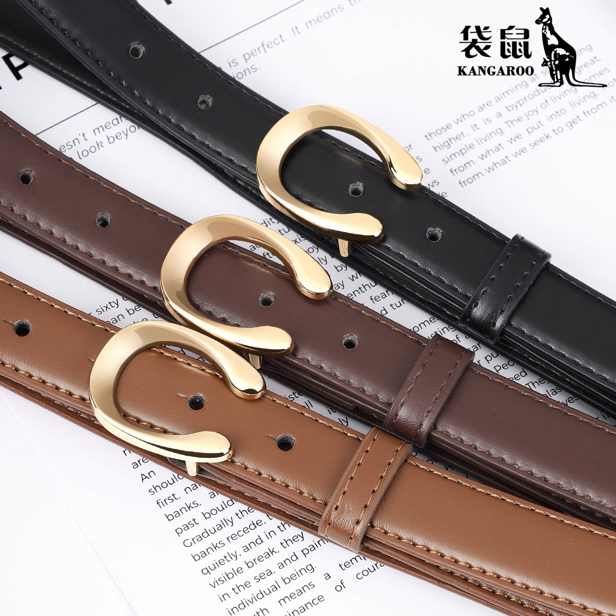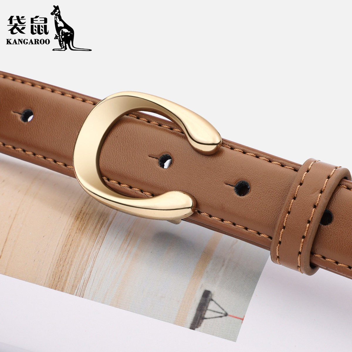 饰 带装 袋鼠女士皮带真皮纯牛皮高级感腰带女细韩版 潮流百搭牛仔裤